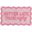 De Badmat Better Late brengt humor en stijl samen in één design. De zachte roze tint geeft rust, terwijl de tekst “Better Late” zorgt voor een glimlach.