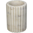 Het verticale reliëf geeft de tumbler een verfijnde uitstraling en zorgt voor een goede grip. Gebruik hem als tandenborstelhouder, make-upkwastenhouder of als chique opberger voor kleine accessoires. Dankzij het natuurlijke gewicht van het marmer staat hij stevig op zijn plaats en is hij eenvoudig te reinigen.