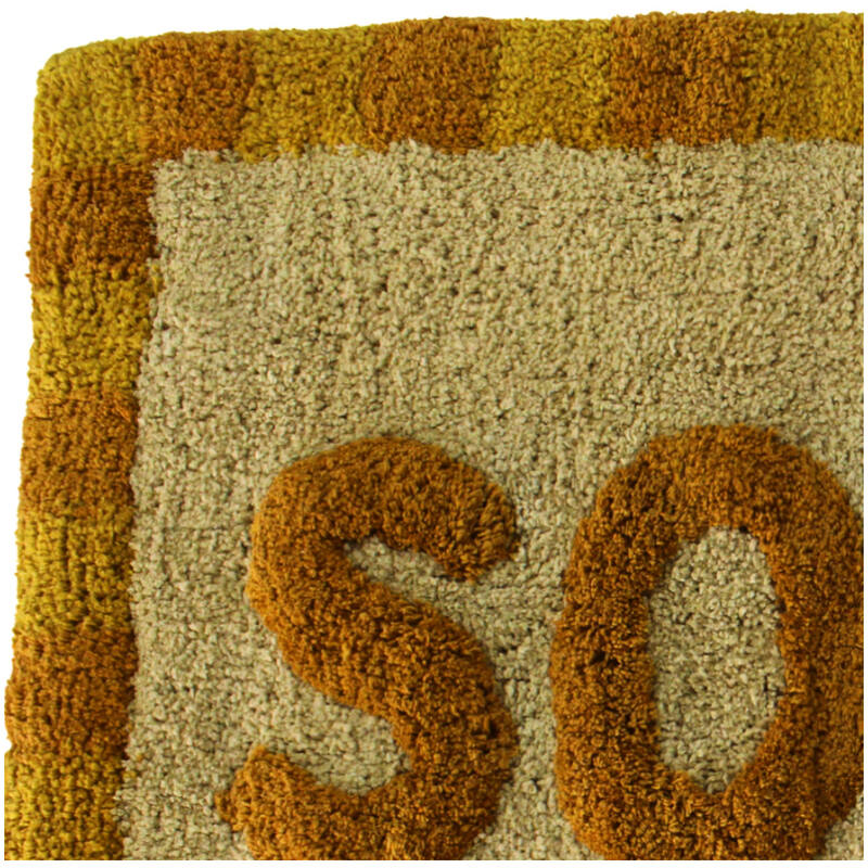 De Badmat Soleil Mosterd straalt warmte en vrolijkheid uit. De mosterdgele tint in combinatie met een subtiele tekst zorgt voor een zomerse, luxe uitstraling.