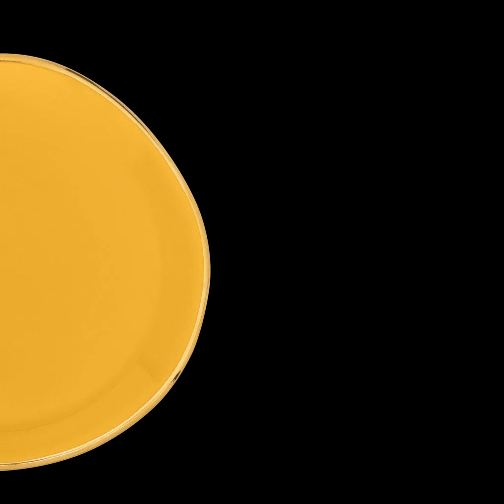 Dit bordje uit de populaire Good Morning collectie brengt een vleugje zonneschijn naar je tafel. Het Good Morning klein bordje Daglelie Ø 9 cm is uitgevoerd in een frisse dagleliegele tint en afgewerkt met een handgeschilderde gouden rand.