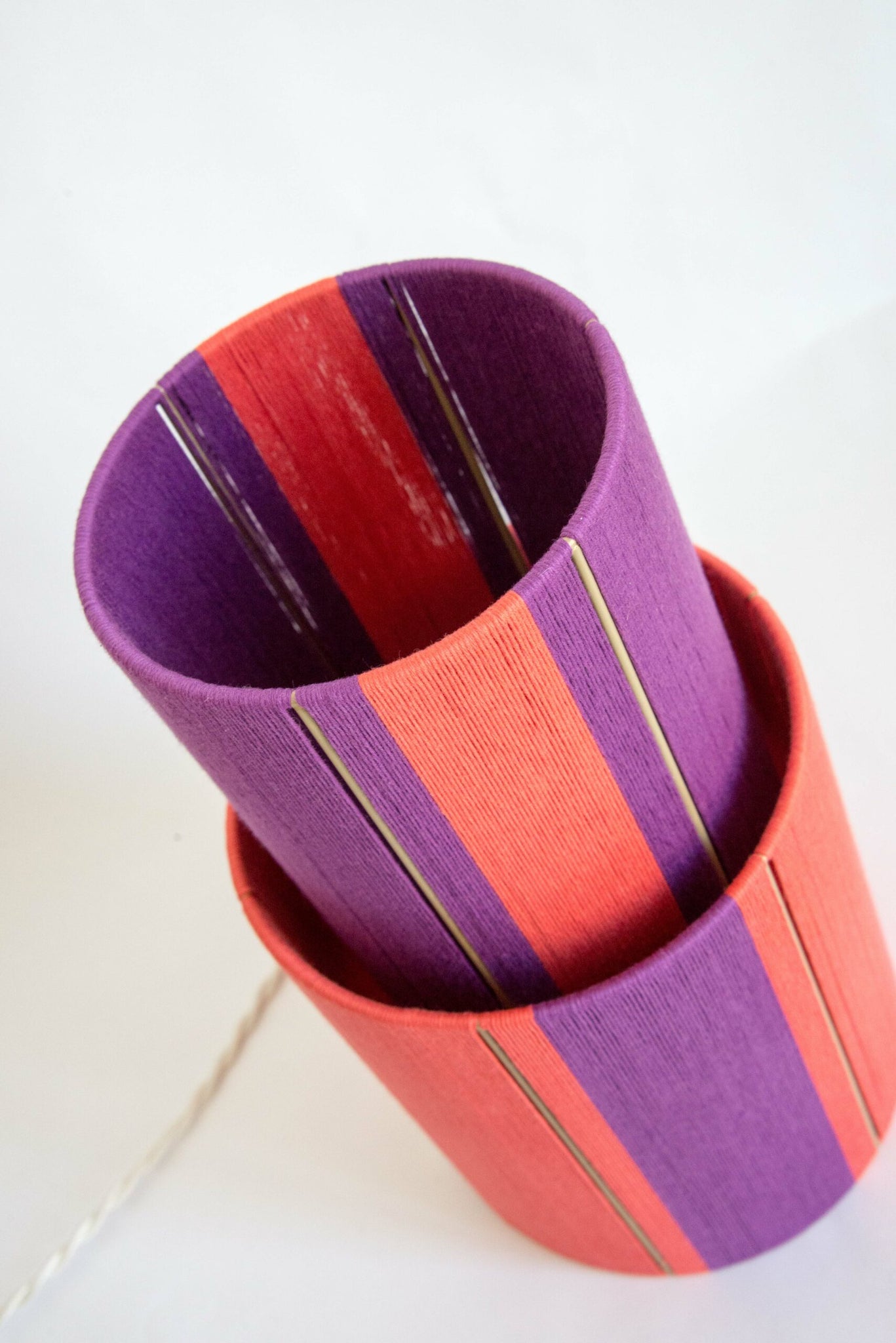 L’Attachante Prune – Corail is een handgemaakte, moderne tafellamp met een elegant tweedelig ontwerp waarbij twee lampenkappen op harmonieuze wijze met elkaar verbonden zijn. Het sculpturale silhouet, geïnspireerd op de vorm van een vaas, creëert een speels hoogteverschil dat karakter en verfijning toevoegt aan elke ruimte. De kleurencombinatie prune en corail geeft een warme, artistieke en levendige uitstraling die perfect past binnen boutique en hedendaagse interieurs.