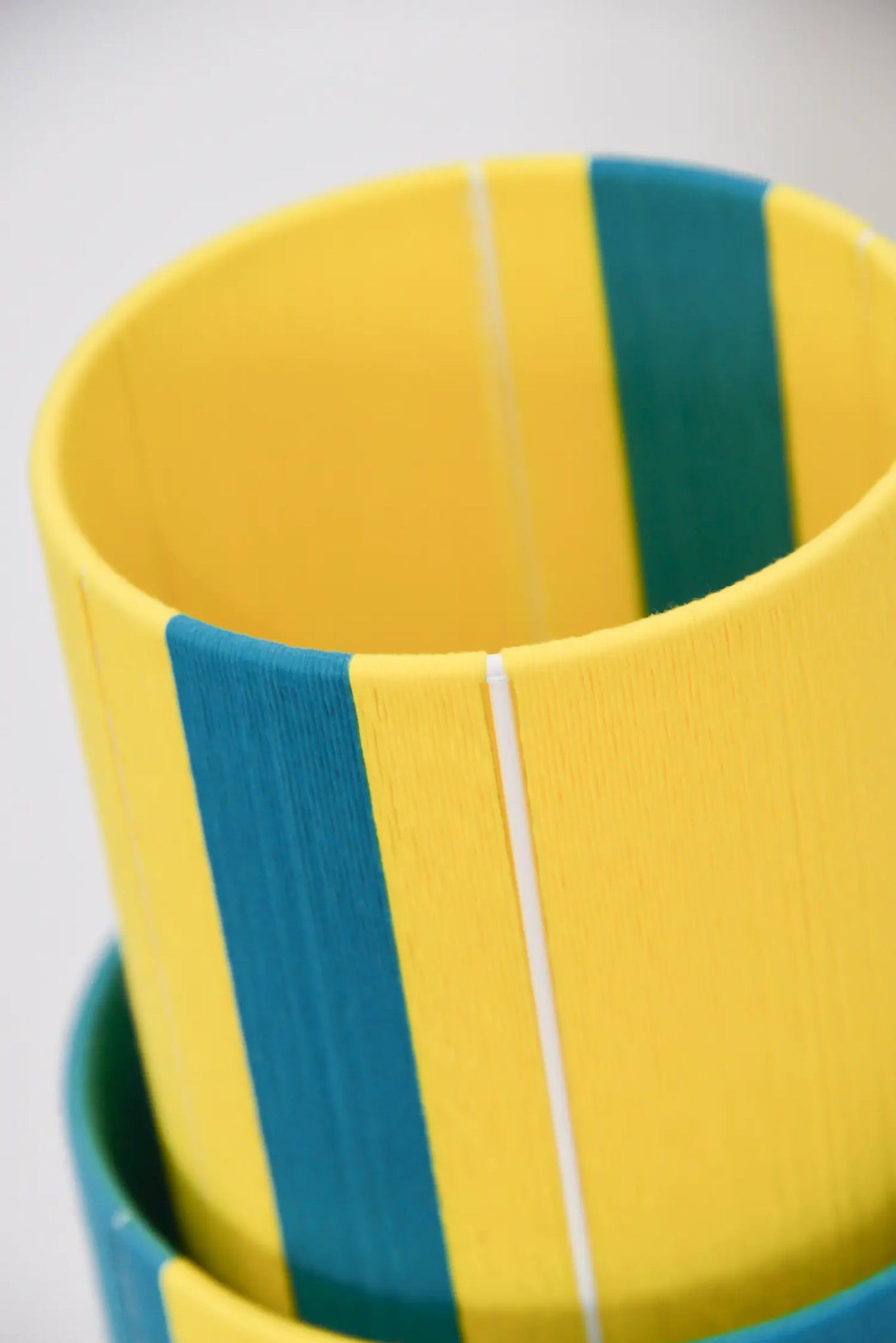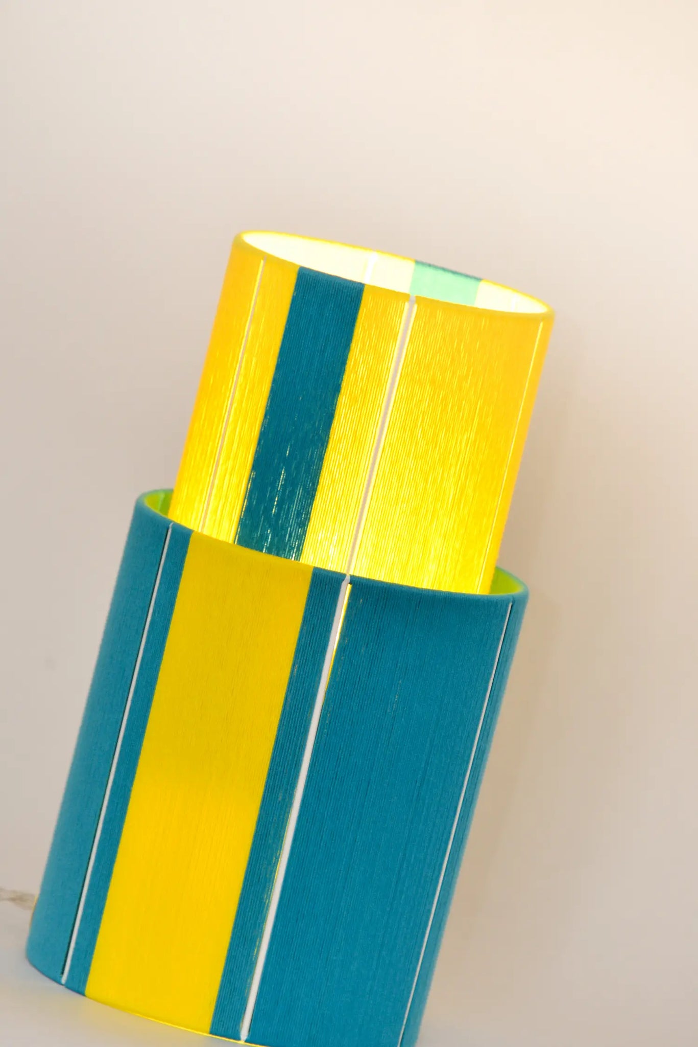 L’Attachante Riviera Acidulée – Jaune / Prusse is een handgemaakte designer tafellamp die een zonnige, speelse en frisse sfeer in het interieur brengt. Deze speciale editie is geïnspireerd op de expositie “Riviera acidulée”, waarin levendige, frisse tinten de Italiaanse Rivièra, Miami en zomerse cocktails weerspiegelen.