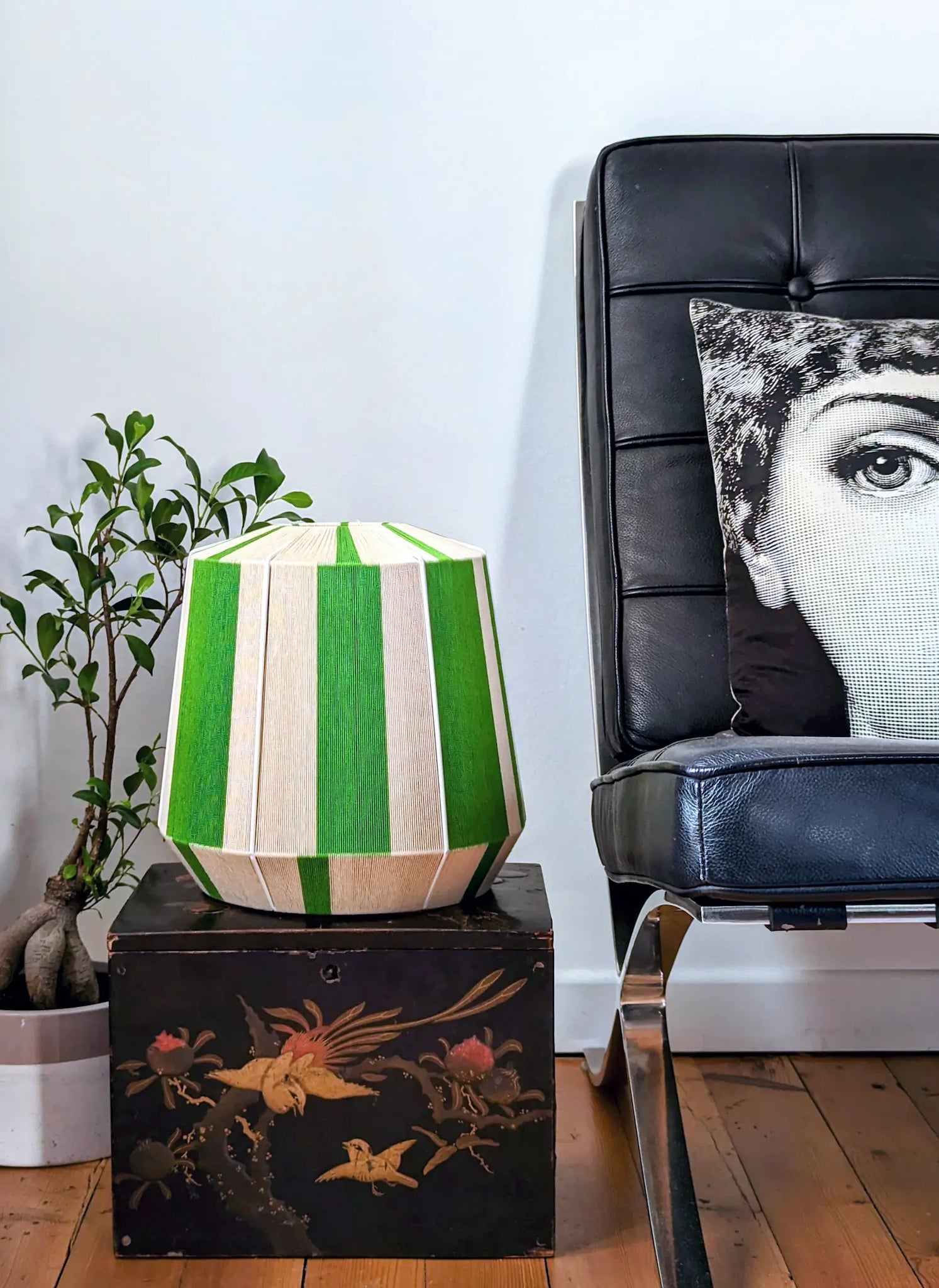 Edition Riviera Acidulée brengt een frisse, zonnige esthetiek geïnspireerd op de Italiaanse kust en de levendige kleuren van mediterrane zomers. L’Epicurienne – met haar grafische mandvorm – geeft elke ruimte een speels maar elegant statement. De kleuren vert prairie en crème zorgen voor een natuurlijke, zachte lichtwerking die perfect past in zowel moderne als boutique-interieurs.