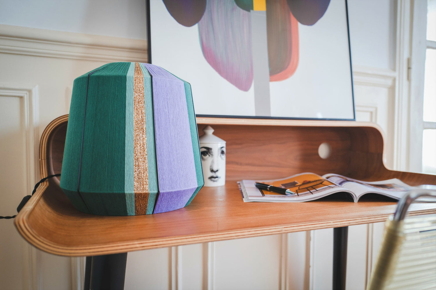 Edition “WAW !” geeft L’Epicurienne een speelse, pop-achtige energie dankzij een combinatie van levendige kleuren en een subtiele gouden glans. De grafische korfvorm zorgt voor een stijlvol, modern statement dat moeiteloos sfeer brengt in elke ruimte. Deze compacte designlamp werkt uitstekend als tafellamp op een sellette, bijzettafel, schouw of boekenrek, maar komt in een kleinere ruimte ook prachtig tot haar recht als hanglamp.