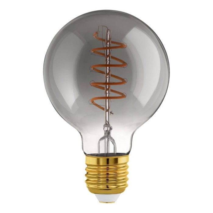 Een compacte globe-lamp in luxe smoke-glas met spiraal LED. Geeft warm licht en past perfect bij moderne of donkere interieurs.