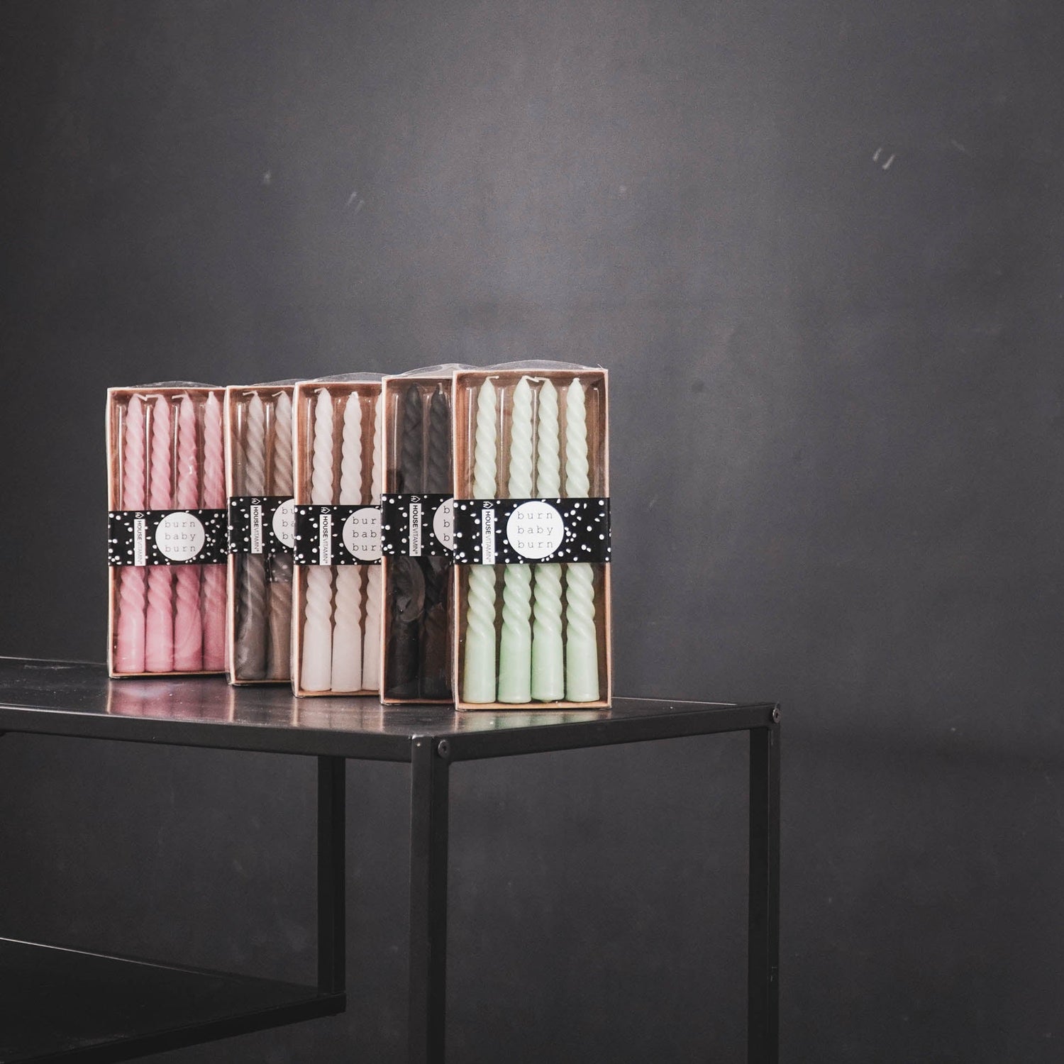 Gedraaide Kaarsen Groen (Set van 4) / Housevitamin is nabesteld en wordt verzonden zodra het weer op voorraad is.