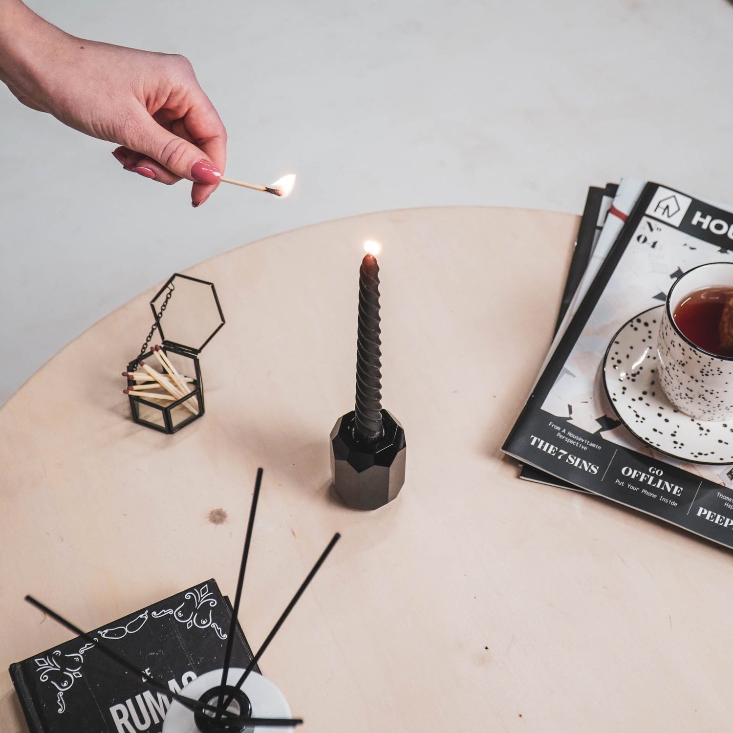 Gedraaide Kaarsen Zwart (Set van 4) / Housevitamin