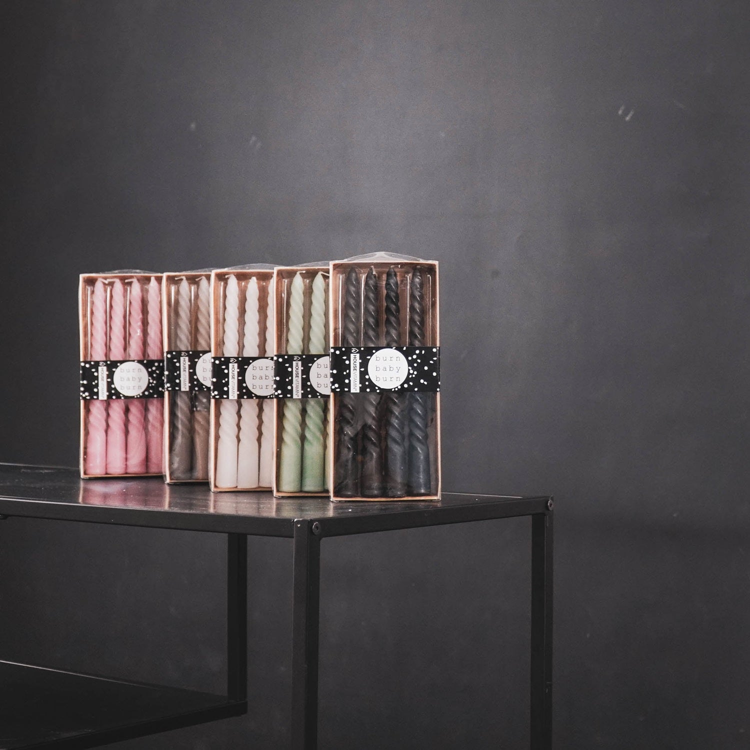 Gedraaide Kaarsen Zwart (Set van 4) / Housevitamin is nabesteld en wordt verzonden zodra het weer op voorraad is.