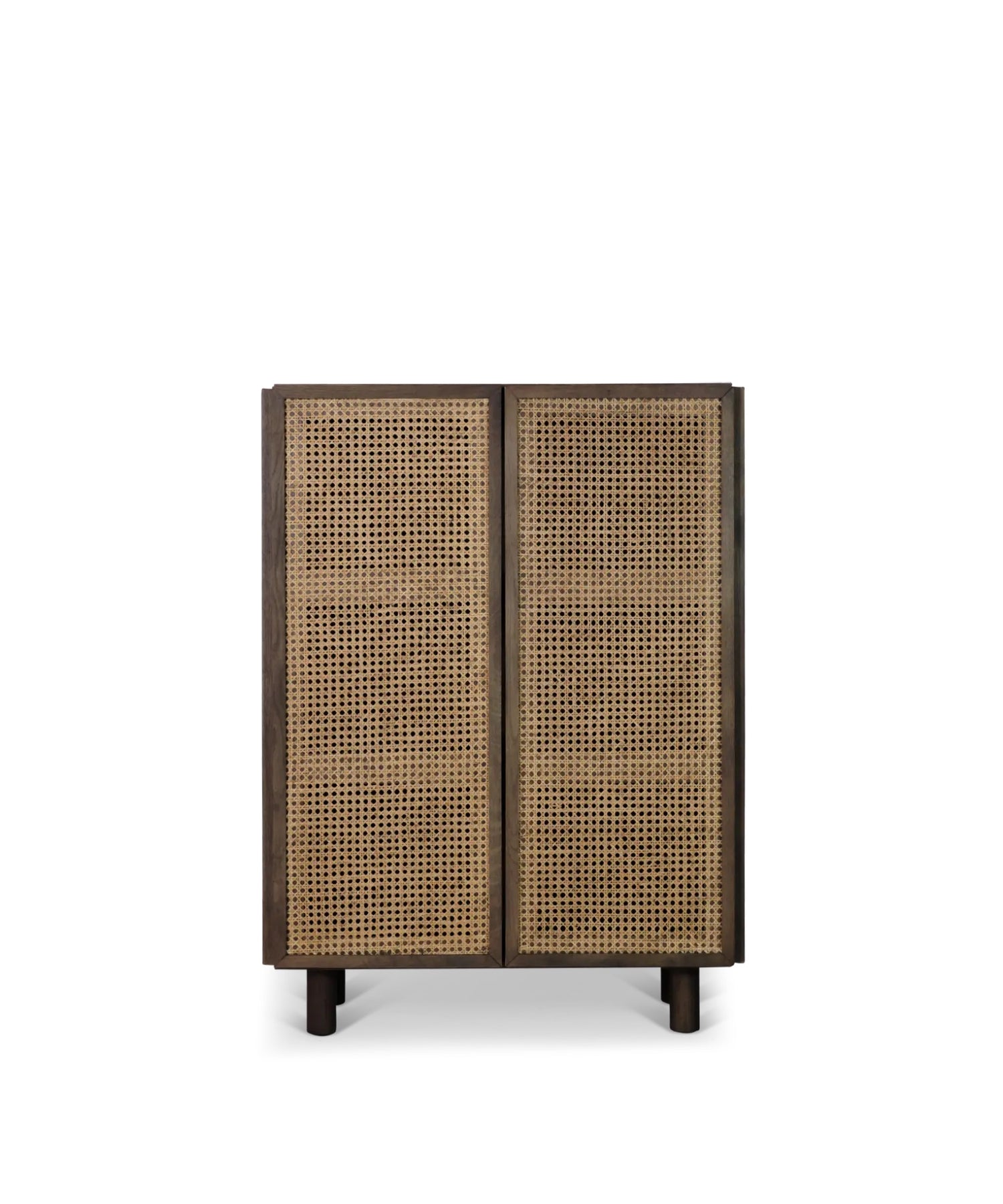 Materiaal | Massief eikenhout (frame & poten), Franse rattan panelen en MDF met eikenfineer
