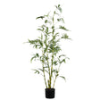 De plant wordt geleverd in een stevige zwarte pot en is semi-handmade, wat betekent dat de bladeren met zorg geplaatst worden voor een realistische en speelse bladval. De mix van stof en kunststof geeft de bladeren een fijne matte structuur, waardoor de bamboe nauwelijks te onderscheiden is van echte bamboe. Licht, sfeervol en volledig onderhoudsvrij - de perfecte toevoeging voor wie luxe groene accenten wil zonder verzorging.