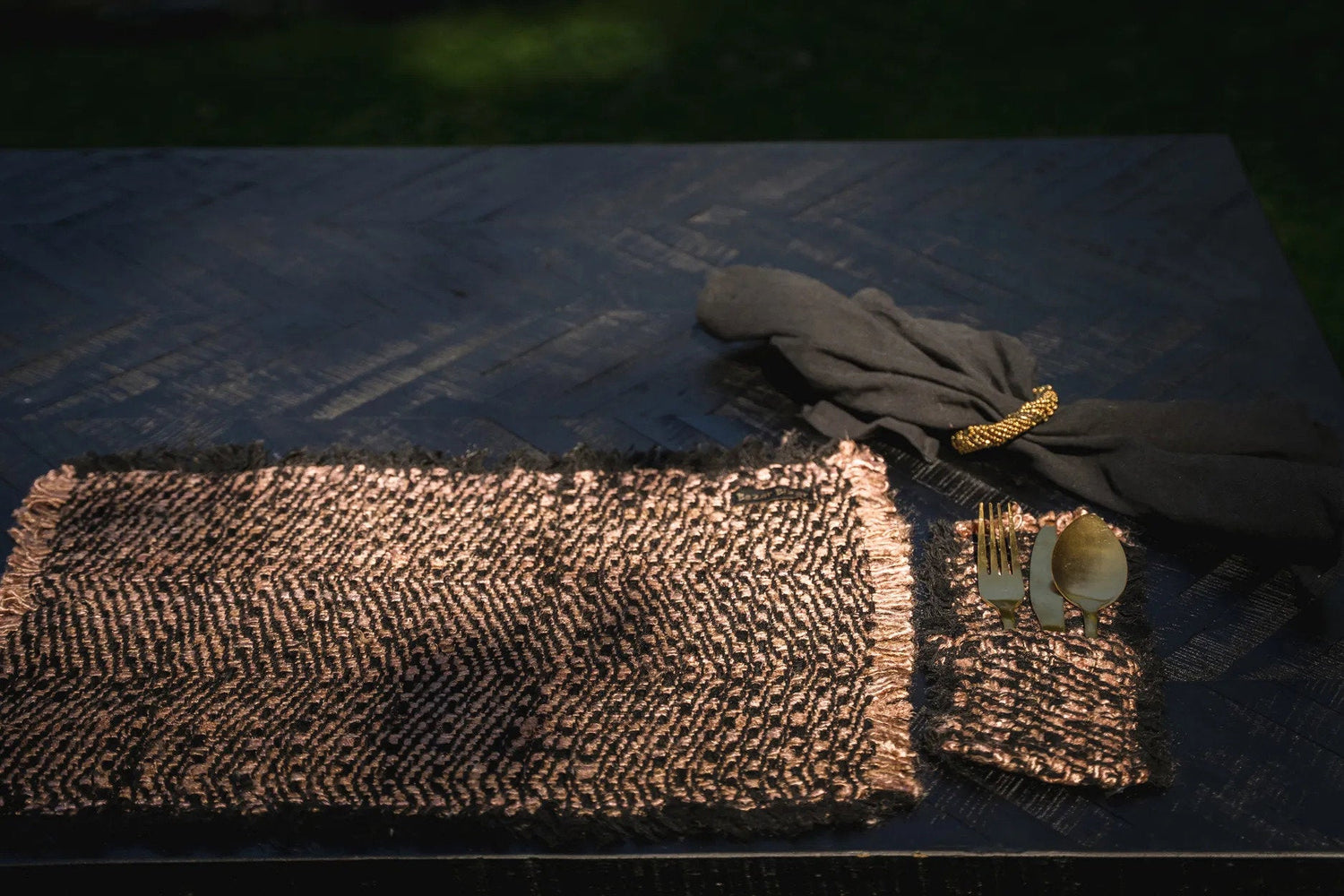 De Oh My Gee Bestekhouder Black Copper (Set van 4) brengt warmte, luxe en diepte in elke tafelsetting - ideaal voor zowel binnen als buiten. Het zachte katoen met zijdeachtige glans zorgt voor een elegante uitstraling, terwijl de rijke Black Copper-tint een stijlvolle, boutique sfeer creëert.