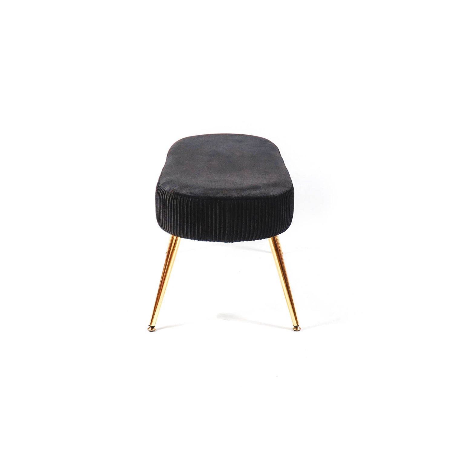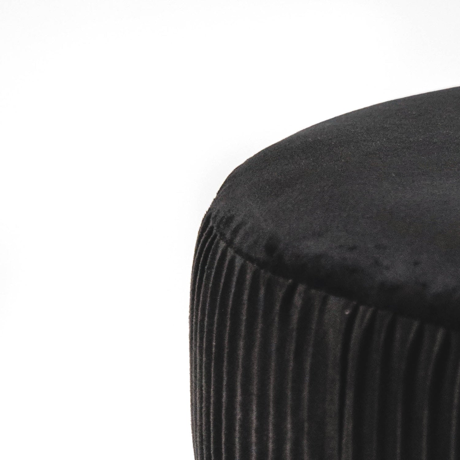 De zwarte velvet look stof in combinatie met het strakke metalen onderstel geeft deze hocker een elegante, eigentijdse uitstraling die perfect past binnen moderne, urban en boutique interieurs.