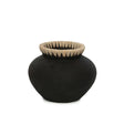 Dankzij het compacte formaat past hij perfect op een (tuin)tafeltje, badkamerplank, nisje, vensterbank of in een overdekte buitenruimte. De combinatie van diep zwart terracotta en natuurlijke raffia zorgt voor een warme, boho-chique uitstraling die moeiteloos aansluit bij zowel moderne als natuurlijke woonstijlen.