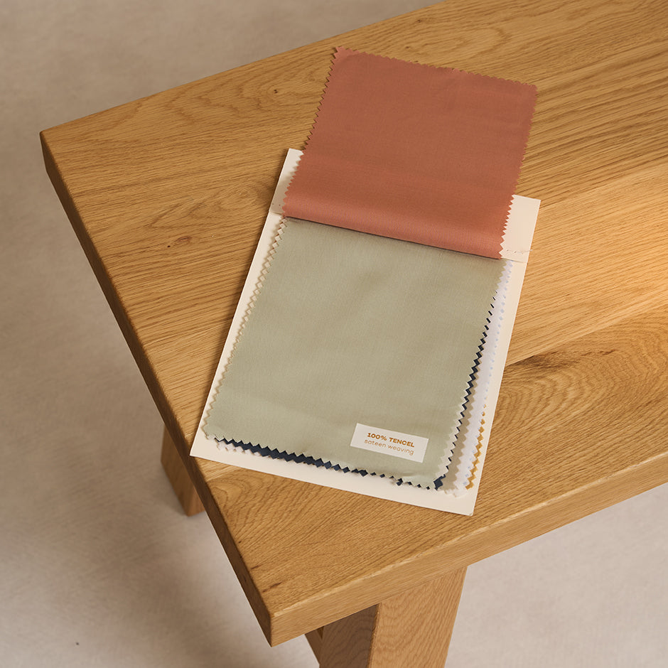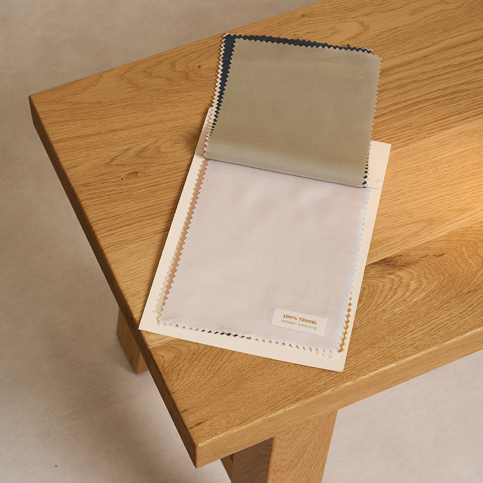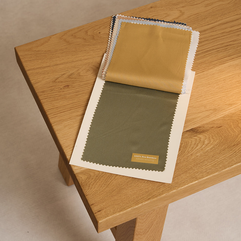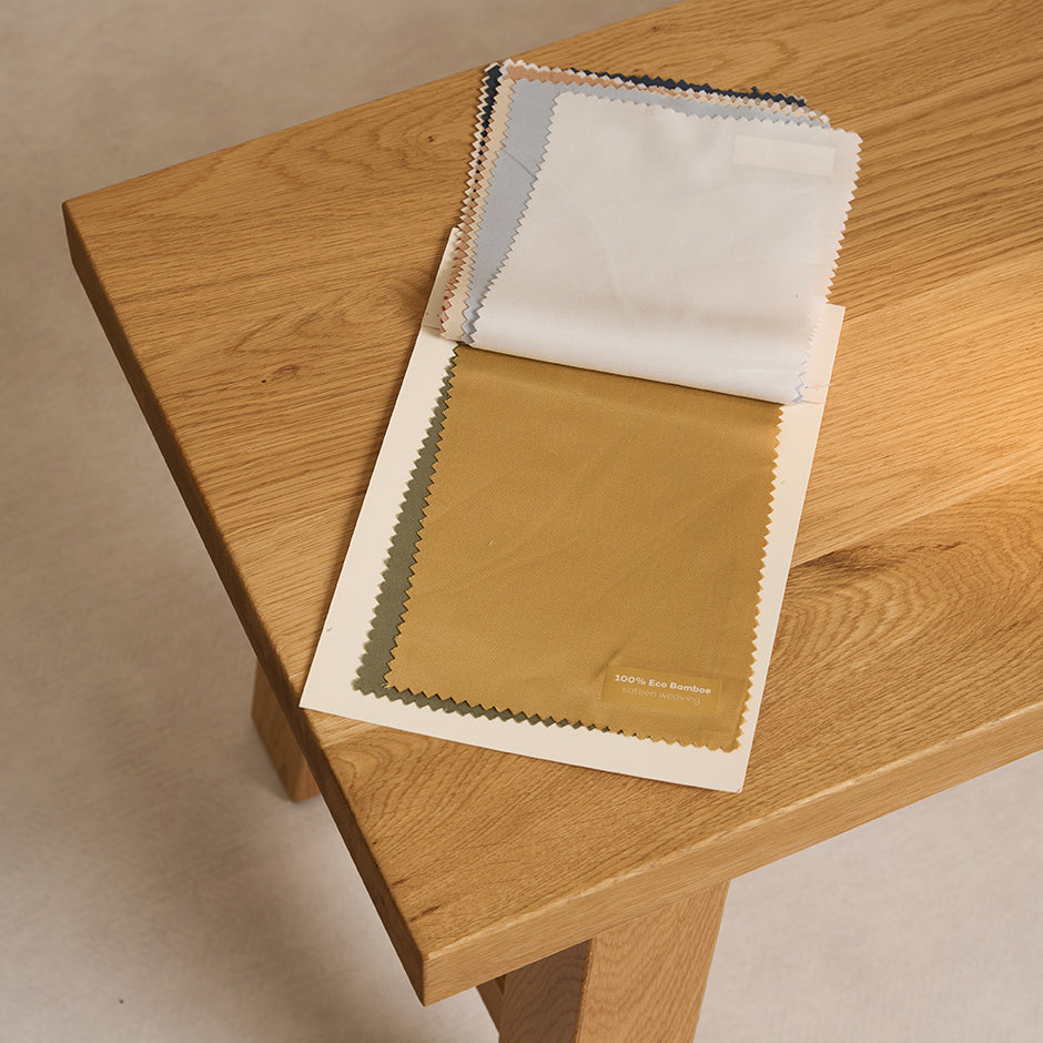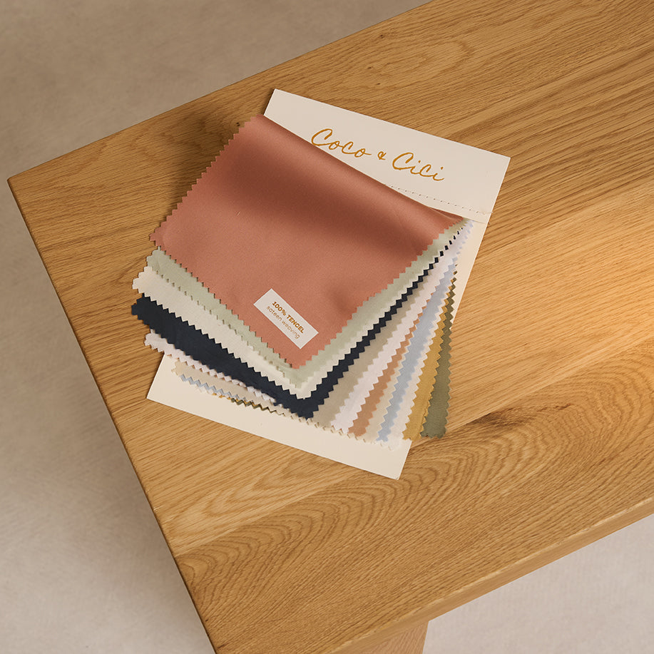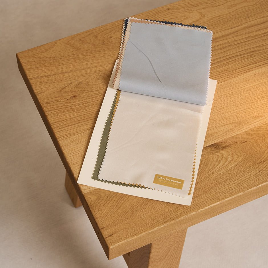De kleurstaal bevat samples van Eco Bamboe, TENCEL™ Sateen en TENCEL™ Twill. Ideaal wanneer je twijfelt tussen kleuren, wevingen of stoffen en zeker wilt zijn van je keuze voordat je investeert in nieuw beddengoed.