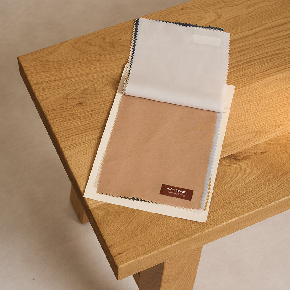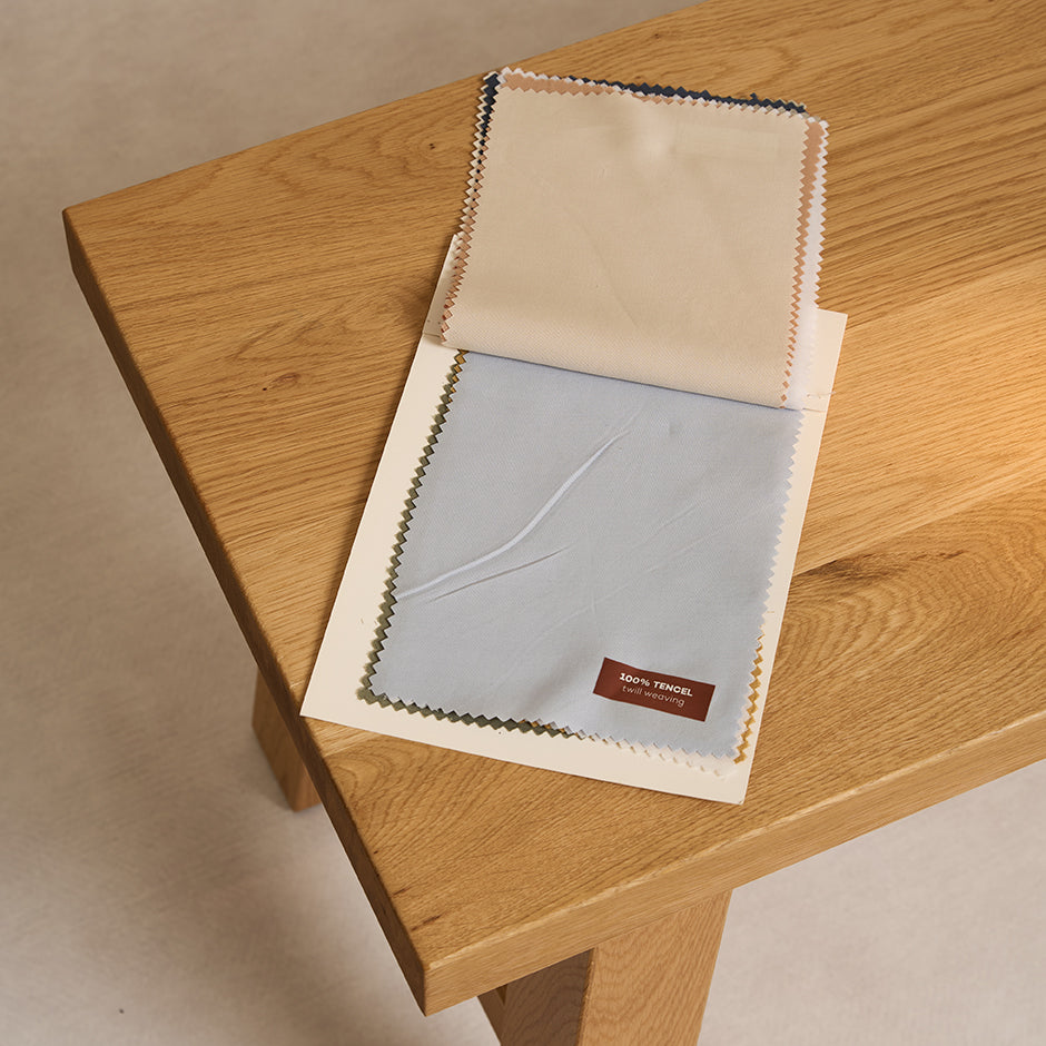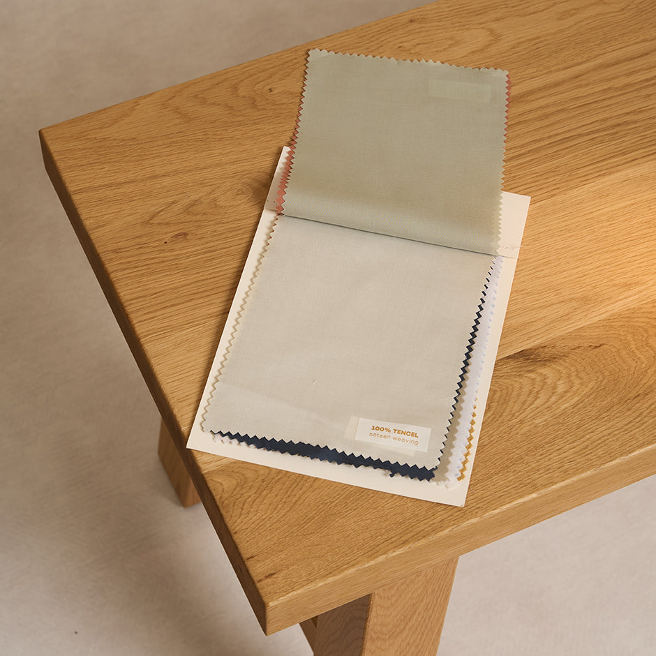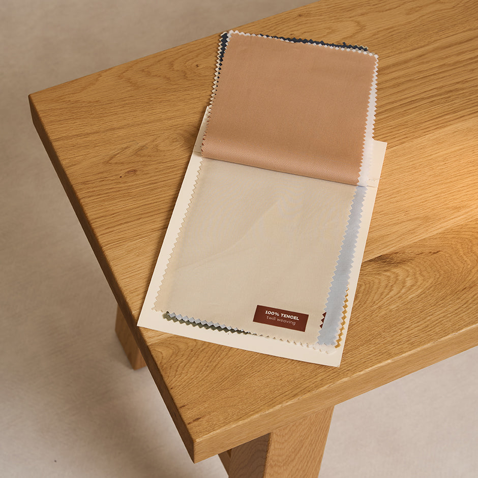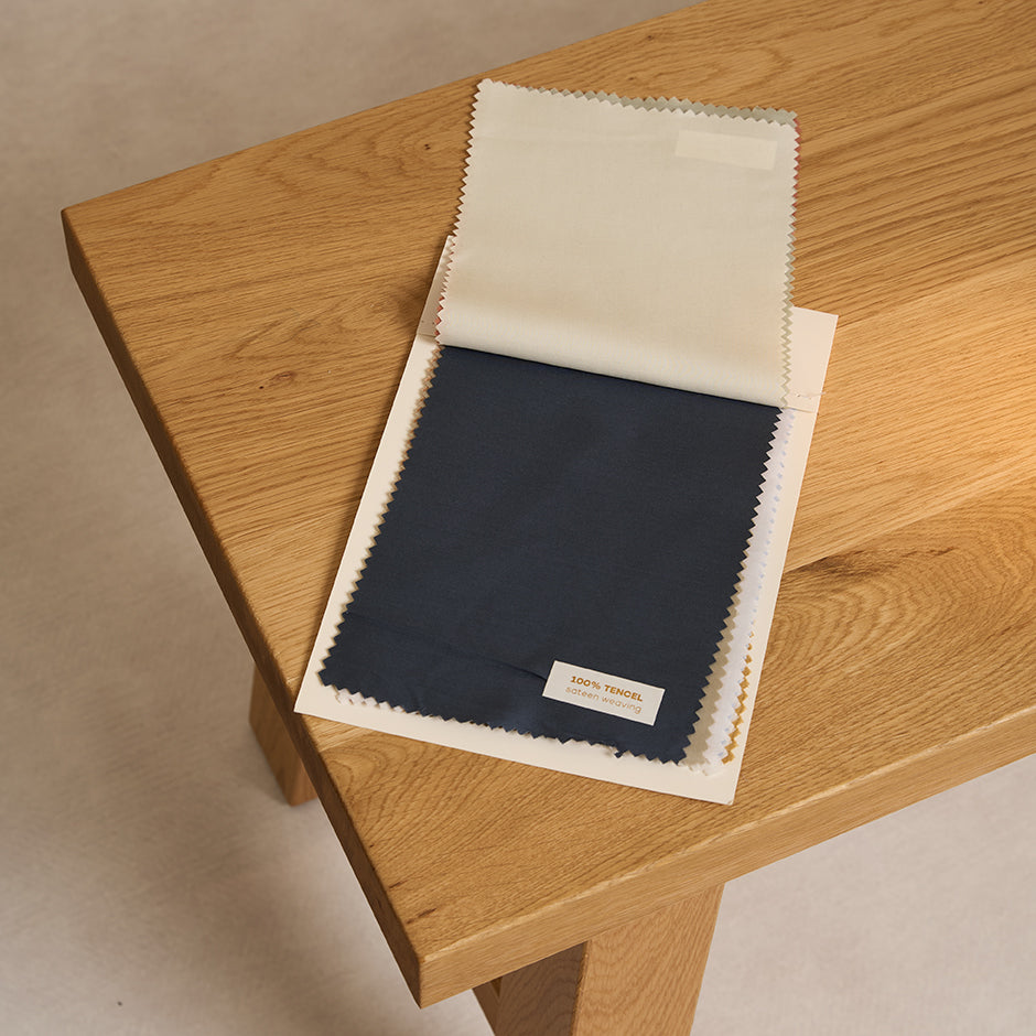 De kleurstaal bevat samples van Eco Bamboe, TENCEL™ Sateen en TENCEL™ Twill. Ideaal wanneer je twijfelt tussen kleuren, wevingen of stoffen en zeker wilt zijn van je keuze voordat je investeert in nieuw beddengoed.