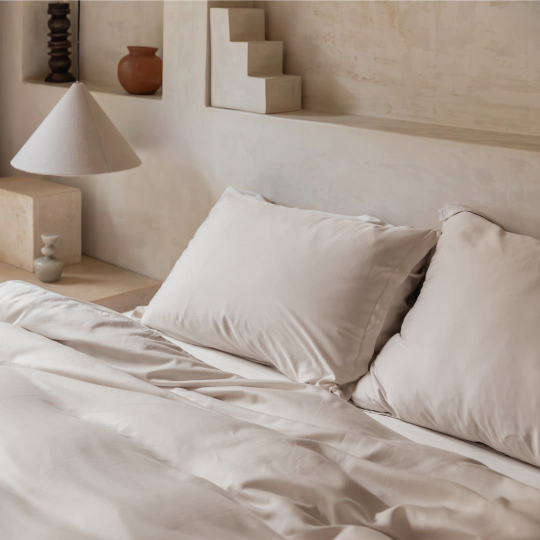 Interieurstijl | Luxe Satijn & Natuurlijke Vezels – Smooth & Silky Bedding – Contemporary Hotel Style – Elegant Minimal Design – Soft Neutral Textures – Natural Glow Materials – Modern Serenity Comfort