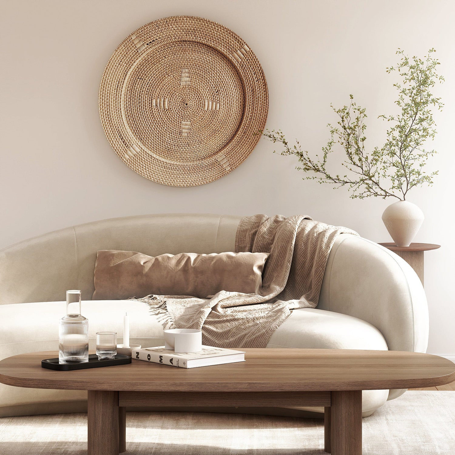 De Boho Japandi Wanddecoratie - Raffia Wandplaat vormt een prachtige samensmelting van boho-chic charme en Japandi-elegantie. Met de hand vervaardigd van natuurlijke raffia door Balinese ambachtslieden, straalt deze decoratieve wandplaat rust, authenticiteit en vakmanschap uit.
