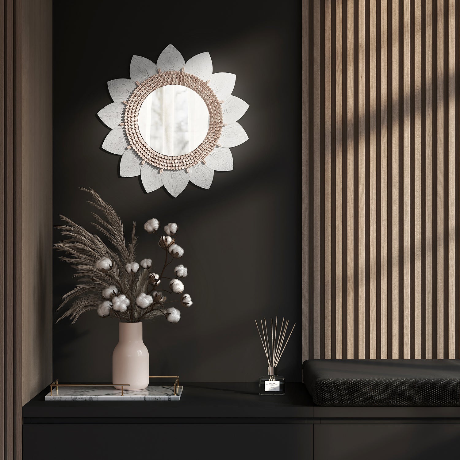 Deze spiegel is meer dan enkel decoratie: hij symboliseert ambachtelijk vakmanschap, duurzame elegantie en de serene schoonheid van Japandi-design.