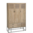 H 175,5 cm × B 115 cm × D 45 cm Indeling: 3 deuren + 4 ruime laden Constructie: massief hout met geweven frontdetails