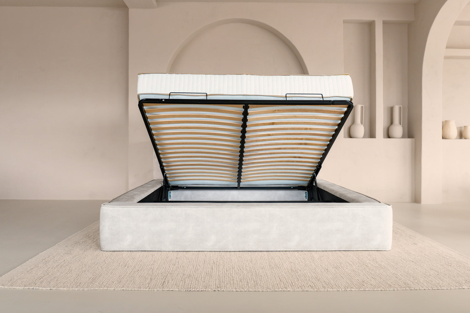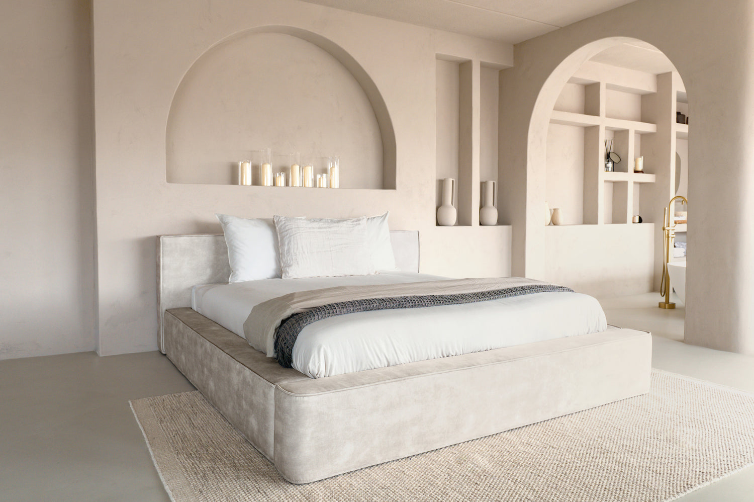 Het Élégance Royale Bed brengt rust, luxe en hotelallure samen in één stijlvol ontwerp. De zachte velvet beige bekleding geeft het bed een warme, uitnodigende uitstraling die perfect past binnen moderne, minimalistische en boutique interieurs.