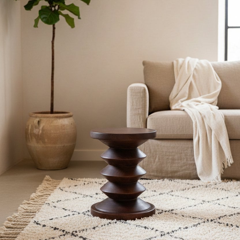 Het compacte formaat, de rijke houtnerf en de elegante verticale vorm geven je ruimte onmiddellijk karakter. Gebruik hem als kruk, bijzettafel, plantentafel of als opvallend sculpturaal element - de Kiribati past moeiteloos in natuurlijke, Japandi of Boutique interieurs.