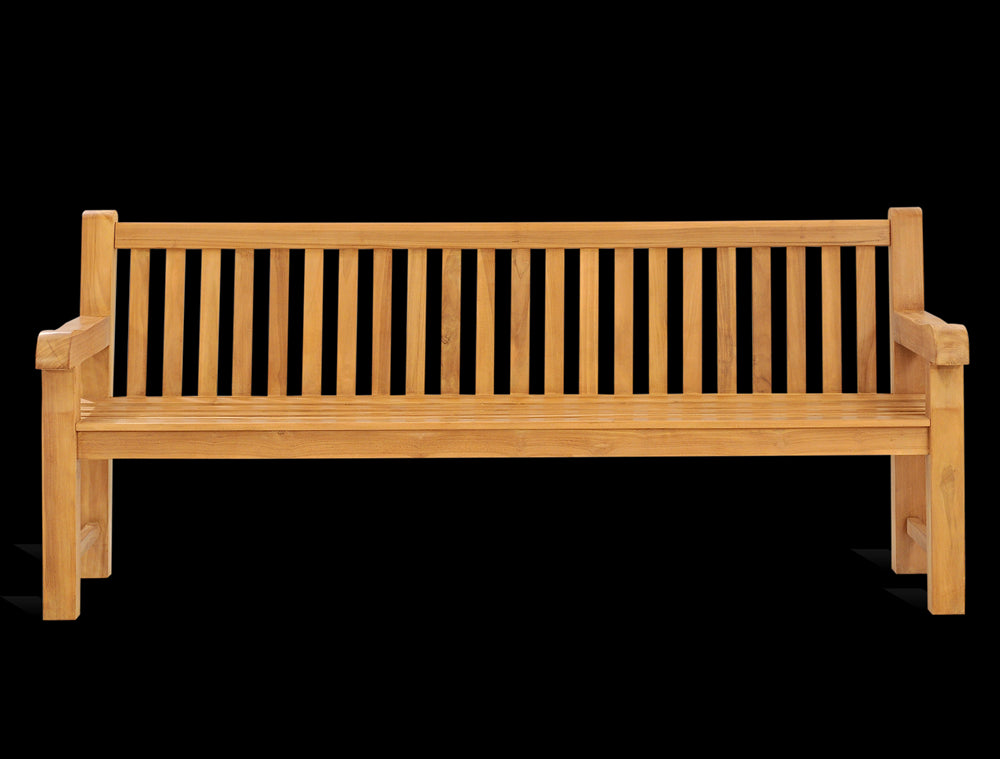 Het robuuste silhouet, de royale lengte van 180 cm en de elegante lattenstructuur vormen samen een comfortabele zitplek voor meerdere personen. Het teak zal door de seizoenen heen prachtig vergrijzen, wat bijdraagt aan een natuurlijke, karaktervolle patina.
