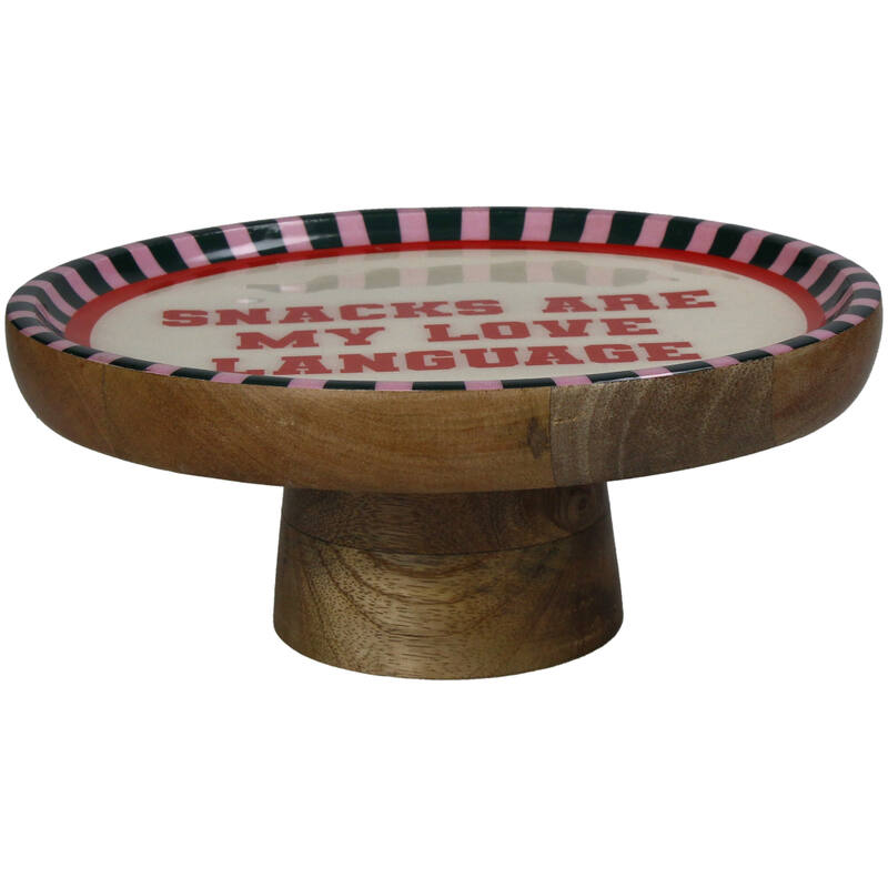 Een stijlvolle taartstandaard van mangohout (20×20×8 cm) met een natuurlijke, warme uitstraling.