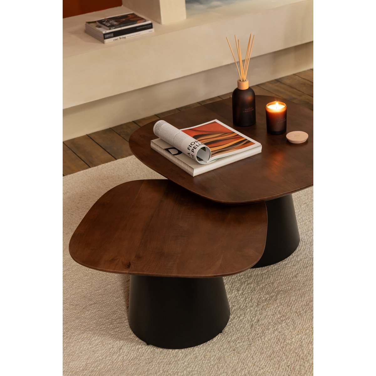 Bijzettafel Vierkant Donkerbruin/Zwart (Set van 2) / J-Line