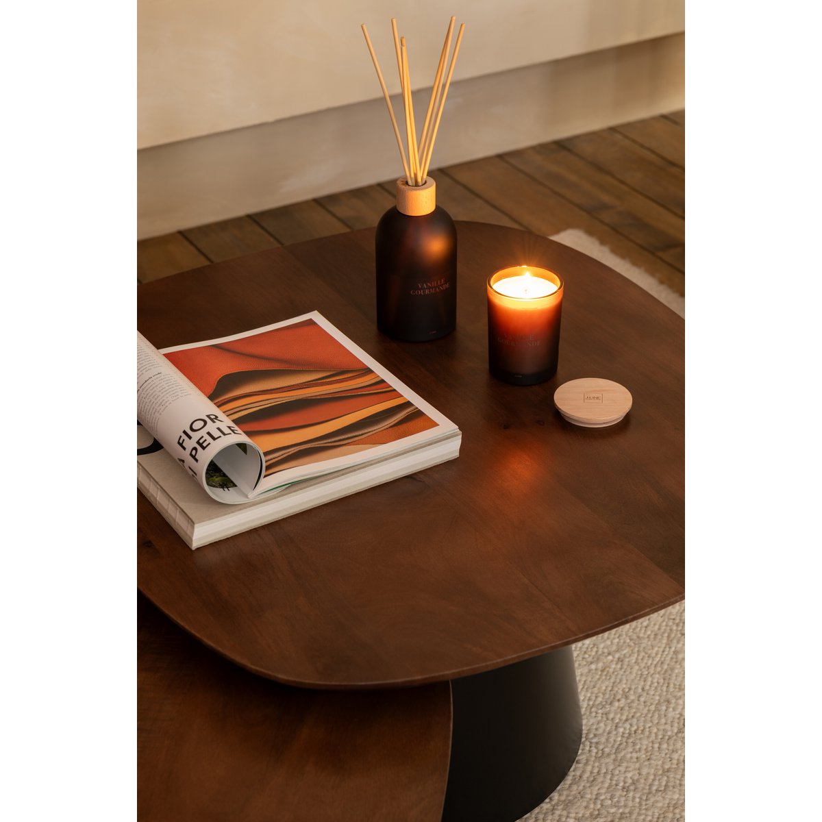 De J-Line Bijzettafels Vierkant combineert de rijke uitstraling van donkerbruin mangohout met de robuuste elegantie van zwart metaal. Deze set van twee tafels straalt tijdloze klasse uit en biedt veelzijdigheid: gebruik ze samen als salontafel duo of apart als stijlvolle bijzettafels.