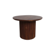 De Bullnose bijzettafel in bruin van Raw Materials is een sfeervolle en ambachtelijke tafeltje, volledig vervaardigd uit donkerbruin gebeitst mangohout. Het ronde blad met de elegante, handgesneden poten geeft deze tafel een subtiele sculpturale uitstraling - warm, stijlvol en perfect passend in boutique interieurs.