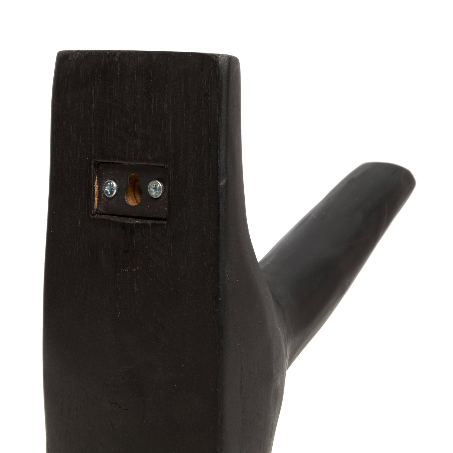 De Haak is een stijlvolle, handgemaakte kapstokhaak van massief teakhout. Met zijn diepe zwarte afwerking en minimalistische vorm brengt deze haak een verfijnde, natuurlijke uitstraling in zowel binnenruimtes als beschutte buitenruimtes.