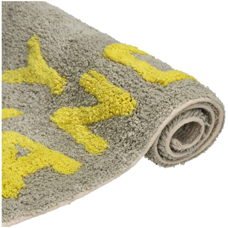 Breng een innovatief optimisme in de badkamer met deze stijlvolle badmat in warme geeltinten. De onderliggende tekst “Hey Handsome” zorgt voor een vrolijk accent en een glimlach bij elke stap uit de douche. Gemaakt van zacht katoen dat comfortabel onder de voeten en snel droogt.